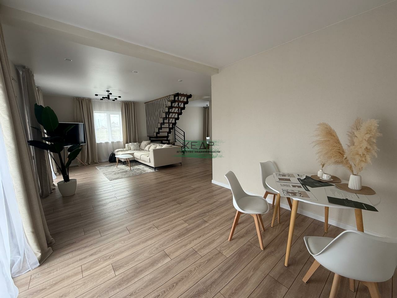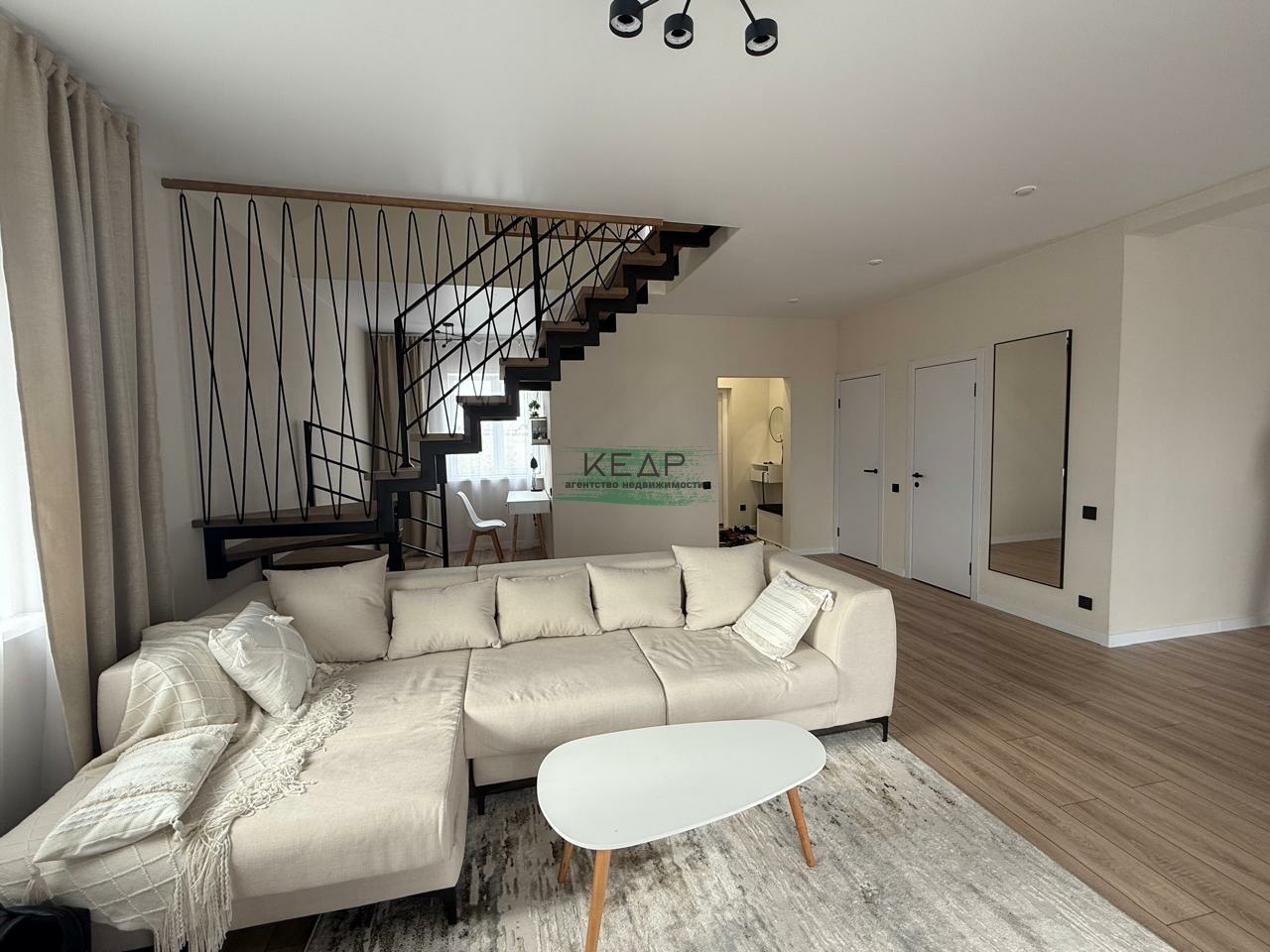- Дом полностью готов к проживанию: выполнена чистовая отделка в мягких пастельных тонах, потолки со встроенными светильниками.