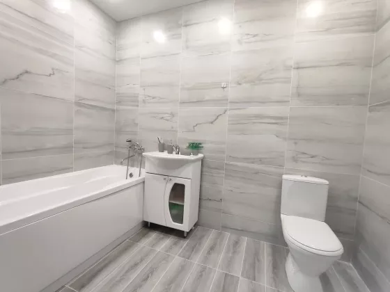 📌Отделка санузла – керамогранит. Установлена ванна, унитаз, раковина. В остальной части дома чистовая отделка, напольное покрытие – ламинат, потолки – натяжные.