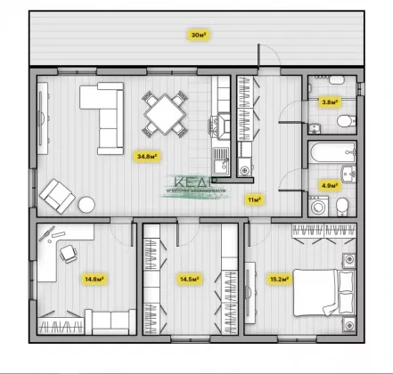 📌Удобная планировка: 3 - ПРОСТОРНЫЕ спальные комнаты, УДОБНАЯ кухня-гостиная, совмещенный санузел, возможность установки гостевого санузла, просторный коридор и техническая комната при выходе из дома.