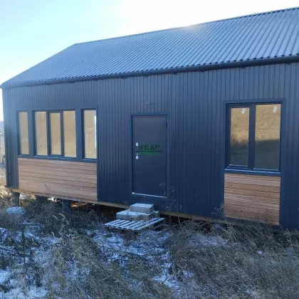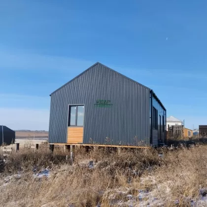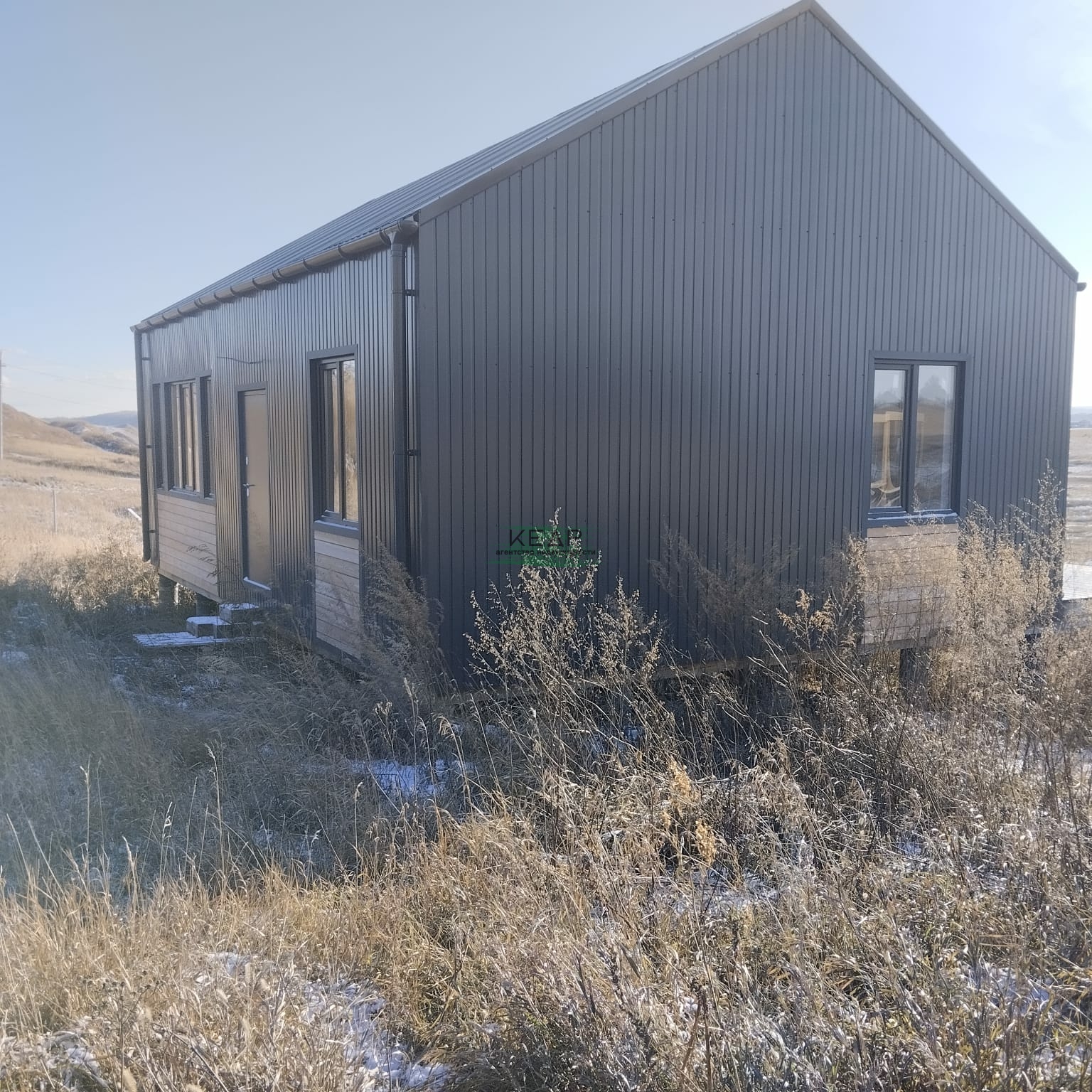 Закрытый тёплый контур (фундамент свайный, коробка дома, кровля-профлист, окна, дверь).