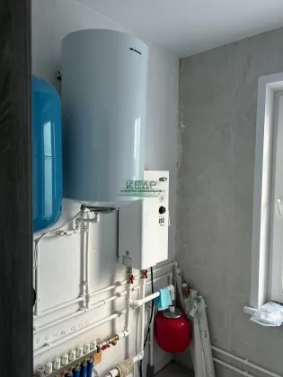 Теплый дoм из гaзобeтoна, теплые полы oт элeктpокотлa нa 9 квт, водa центpализованная, септик на 6 кубов. Все коммуникации проведены в дом.