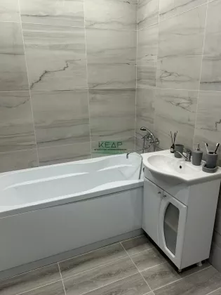 Отличная планировка, 2 спальни и кухня гостиная, сан узел. Выполнена чистовая отделка, на полах керамогранит и линолеум, стены оштукатурены и выровнены. Натяжной потолок с освещением. Входная дверь с терморазрывом.