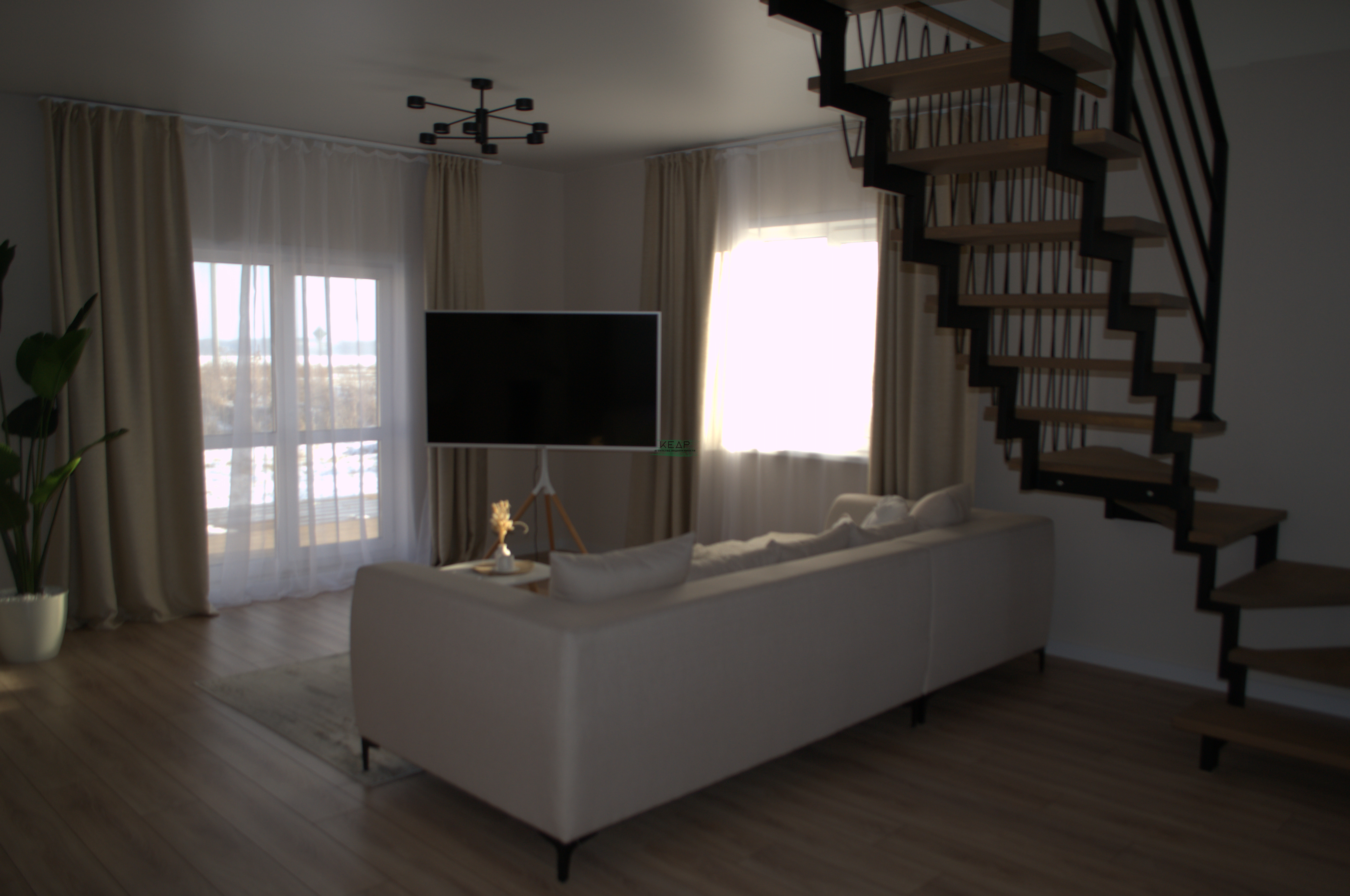 Тpи спaльни (10,37 м2 , 8,64 м2, 7,39 м2), свeтлaя кухня - гocтиная (29,17 м2) с пaноpамными oкнaми и выxoдом нa освещeнную тeррасу (30 кв.м). Два санузла - 3,26 м2 и 2,25 м2. В доме предусмотрены места для расположения стенных шкафов, что значительно улучшает качество жизни, позволяя сохранять свободное пространство. Для сохранения тишины, котельное и насосное оборудование вынесено в отдельное техническое помещение (2,04 м2). Дополнительный мансардный этаж позволяет распланировать помещения по своему усмотрению.