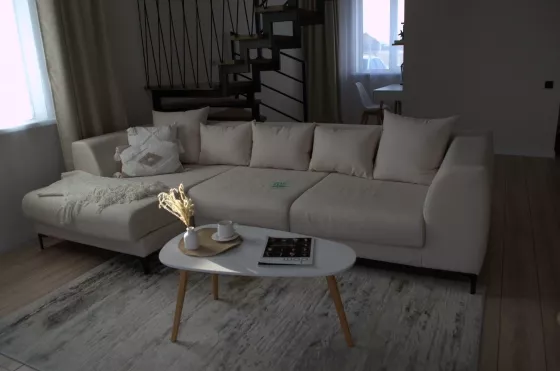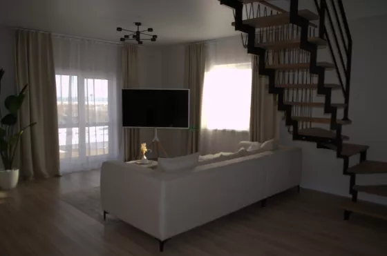 Отопление - теплые полы, электрокотел (Zоtа 6/9 кВт), пятикамерные окна, потолок натяжной со встроенными светильниками. Дом оснащен всем необходимым оборудованием и коммуникациями: эл. энергия 15 кВт, септик 6 м3, автономное водоснабжение (скважина до 40 м).