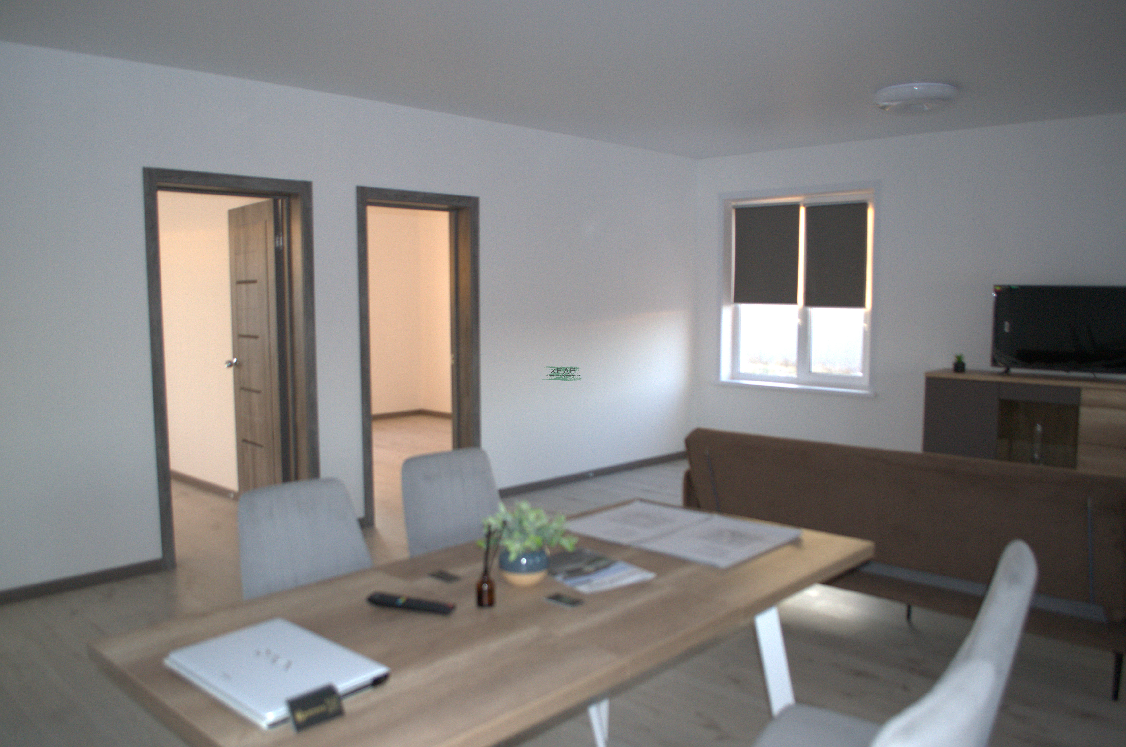 Отличная планировка, 3 спальни и кухня гостиная, сан узел. Выполнена чистовая отделка, на полах и линолеум, стены оштукатурены и выровнены. Натяжной потолок с освещением. Входная дверь с терморазрывом.