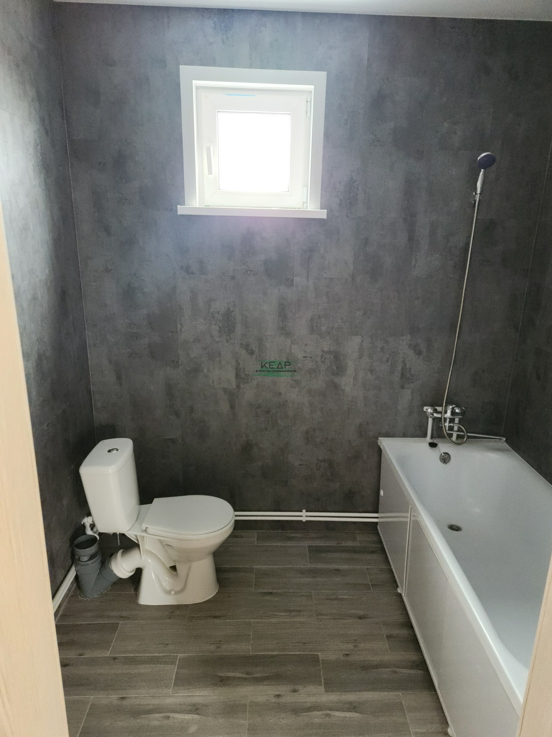 Свежий санузел с новой сантехникой и качественной отделкой.