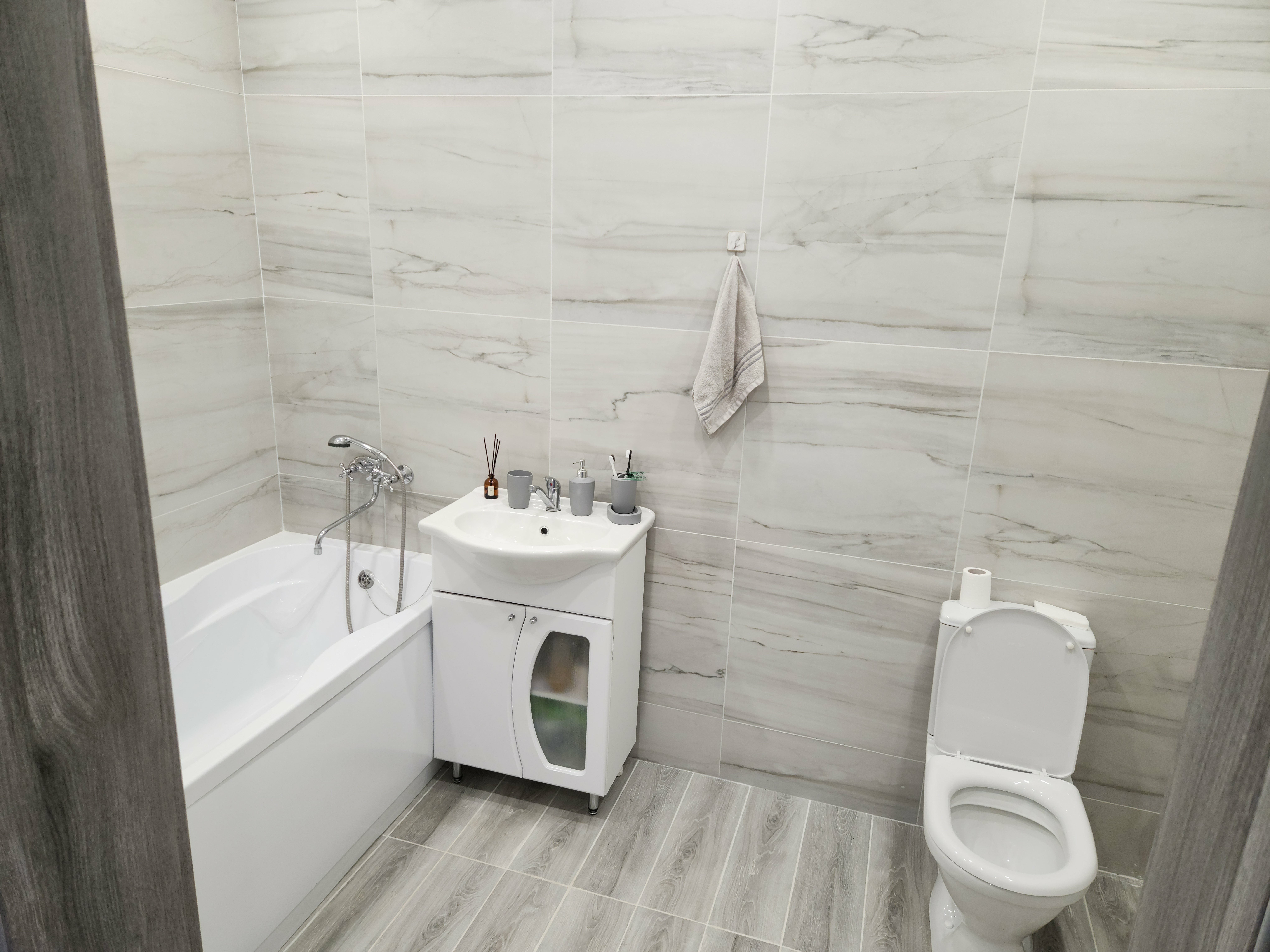 Установлена новая сантехника, санузел отделан качественно.