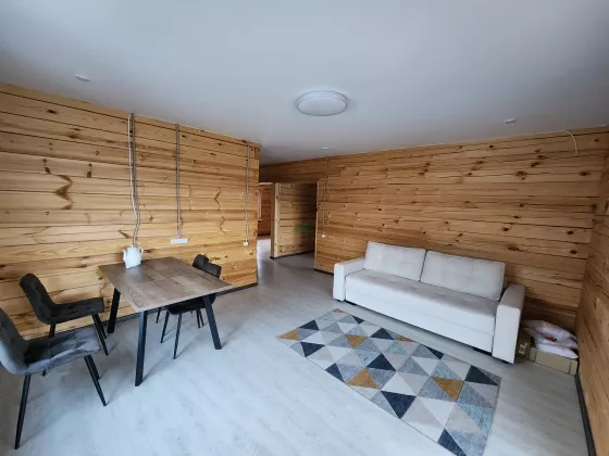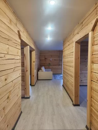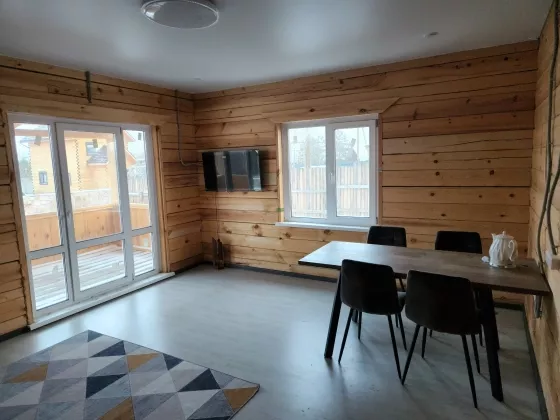 Дом построен из бруса толщиной 18 см, что обеспечивает тепло зимой и приятную прохладу летом.