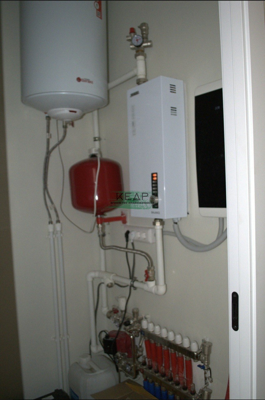 Отопление - теплые полы, электрокотел (Zоtа 6/9 кВт), пятикамерные окна, потолок натяжной со встроенными светильниками. Дом оснащен всем необходимым оборудованием и коммуникациями: эл. энергия 15 кВт, септик 6 м3, автономное водоснабжение (скважина до 40 м).