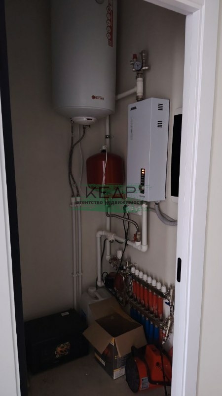 Отопление - теплые полы, электрокотел (Zоtа 6/9 кВт), пятикамерные окна, потолок натяжной со встроенными светильниками. Дом оснащен всем необходимым оборудованием и коммуникациями: эл. энергия 15 кВт, септик 6 м3, автономное водоснабжение (скважина до 40 м).