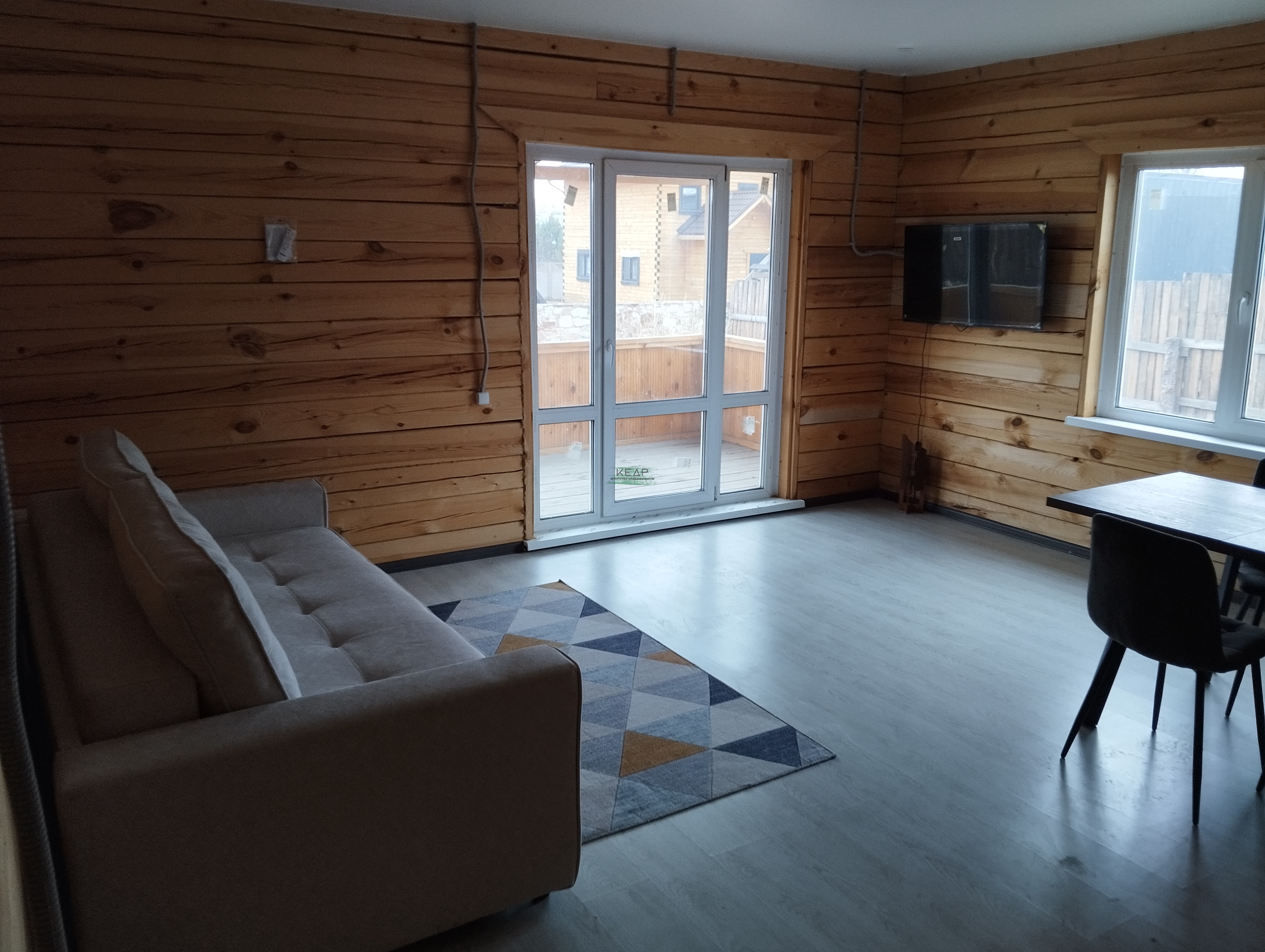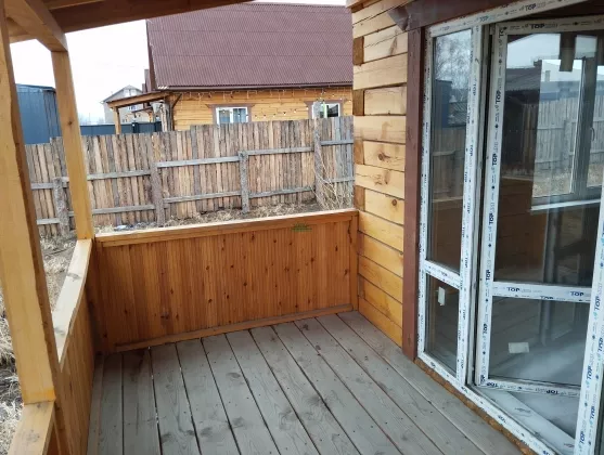 Продаётся уютный и полностью готовый к проживанию дом из экологичного бруса. ✅ Продуманная планировка (130 кв.м.): · 1 этаж: Просторная кухня-гостиная, 3 отдельные спальни, совмещенный санузел и вместительная прихожая. · 2 этаж (Мансарда): Свободная планировка, которую вы можете организовать по своему вкусу, имеется выход на балкон. · Зоны отдыха на воздухе: Две небольшие уютные террасы и крытое крыльцо.