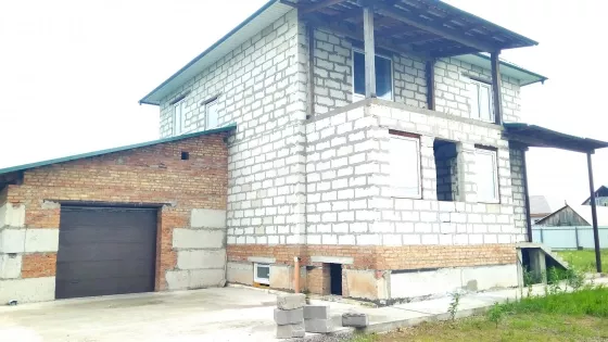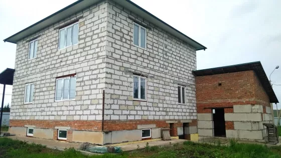 Продается дом 313 кв.м. в. д. Минино, участок 24.5 сотки, ИЖС. Дом 3-х этажный, построен из газобетона (СИБИТ 400мм). Основание - общее свайное поле дома с гаражом, сваи промышленные забивные, длина свай по 6 м; далее ленточный фундамент со связкой арматуры свай; далее цоколь ФБС-500. Перекрытие: - между цоколем и первым этажом, а также вторым этажем - плиты перекрытия - между 2-м этажем и кровлей брус 180*180; - перекрытие гаража брус 180*180. Кровля - металлочерепица; Черновая отделка. Стены только несущие, что позволяет сделать любую планировку. Лестницы между этажами - железобетон заливной. На участке построена баня из 180 бруса, с тремя отделениями, без отделки. Оборудован септик, и колодец для воды технического назначения. Есть возможность подвести к дому центральную воду, труба уже проходит по участку. Дом зарегистрирован, документы в порядке. Звоните!