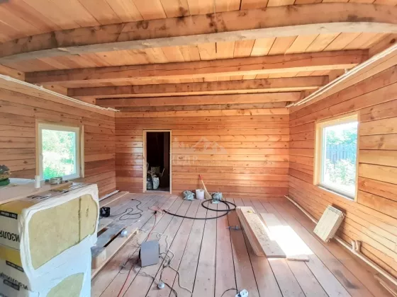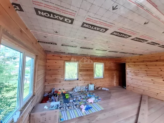 Вода - скважина с насосной станцией на 100 л внутри дома, бойлер на 125 л, отопление котёл, санузел с водяным теплым полом в доме. Канализация - септик. Высота потолков 2,80. По планировке дом готов к любым решениям, на данный момент - 3 изолированные комнаты 12+34+34 + мансарда 34 кв. м. полезной, теплая веранда, гардеробная, санузел. При планировке и строительстве дома соблюдены СНиП.