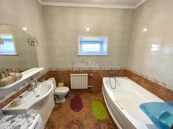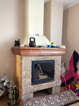 Дом из кирпича, 65 см толщина стен, центральное водоснабжение, центральная канализация, отопление твердотопливный котёл + электро. Электричество — тех. условия на 40 Вт.