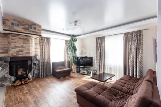 1 этаж - брусовой, наружное утепление, навесной вентилируемый фасад. 100 кв. м. Кухня-гостиная, спальня, кабинет, санузел, гардеробная. Полы с подогревом, камин. Терраса.