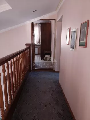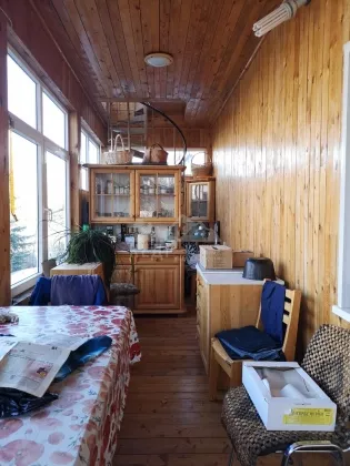 Если Вам надоел шум городских улиц, то вы зашли на правильное объявление, только пение птиц и свежий воздух, вот что вы получаете приобритая данный дом. Уникальность данного дома не только в его месторасположении (соседи только по бокам), из окон виден только лес. Большой дом 160 кв.м. на немаленьком участке 10 сот. Из входной двери вы попадаете на просторную, обшитую вагонкой, с большими окнами террасу, что создает атмосферу теплоты и в тоже время простора, которую в теплое время можно использовать как летнюю кухню, наслаждаясь видами из окна. Кстати на втором этаже есть абсолютно идентичная терраса, на нее можно пройти по винтовой лестнице с террасы первого этажа, либо из комнат на втором этаже. Далее мы заходим непосредственно в сам дом. На первом этаже располагаются: прихожая, кухня, обеденная зона, санузел и конечно изюминка сего прекрасного дома это очень просторный, с высокими потолками и вторым светом каминный зал. Камин выложен из кирпича как и сам дом, с настоящей кирпичной трубой. Затем, если подняться по деревянной лестнице на второй этаж вы окажетесь на балконе над каминным залом. С балкона уже идут отдельные входы в спальни, одна из них совмещена с кабинетом. Как уже говорилось из спален вы можете пройти на ОЧЕНЬ большую террасу, где возможно установить теннисный стол. А из одной спальни есть выход на открытый балкон. Отдельно оборудовано подвальное помещение где установлены твердотопливный и электрический котлы, бойлеры для горячей воды, холодная подается от собственной скважины. В доме есть гараж для Вашего автомобиля и парковочные места на территории для Ваших гостей. На тенистой части участка, среди берез, располагается просторная баня из бруса, с двух сторон терраса, где можно разместить стол с большим количеством гостей. В бане есть большая комната отдыха, отдельное помещение для мытья и просторная парилка. На солнечной части участка расположены теплица, грядки и плодово-ягодные насаждения. Да, вы все правильно понимаете, он может стать Вашим.
