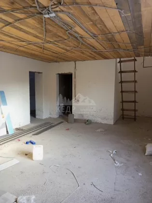Окна и входные двери пластиковые. Забор бетонный, есть готовое основание под откатные ворота. Покупатель остается утеплитель для фасада (весь объем).