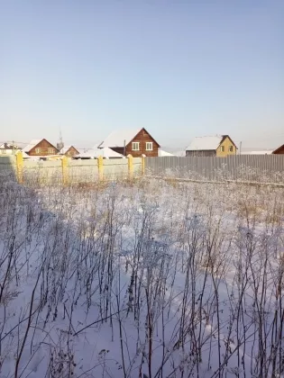 Участок ровный, огороженный со всех сторон. Забор с лицевой стороны бетонный, есть готовое основание под откатные ворота, с трех сторон забор из профлиста.