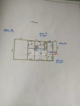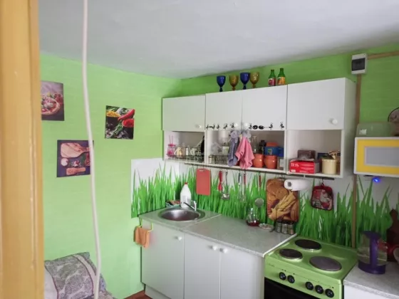 1-й этаж : столовая, кухня, санузел, вход в погреб и подсобное помещение.