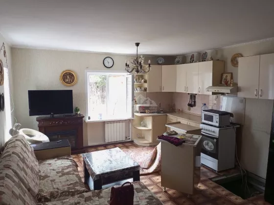 Дом 1-й этаж: кухня-гостиная, санузел, большая комната, спальня
