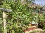 Участок огорожен высоким забором,есть разные саженцы,смородина, малина,вишня, жимолость..