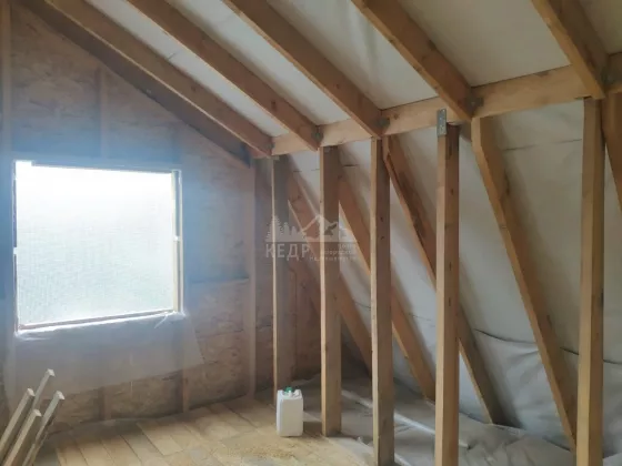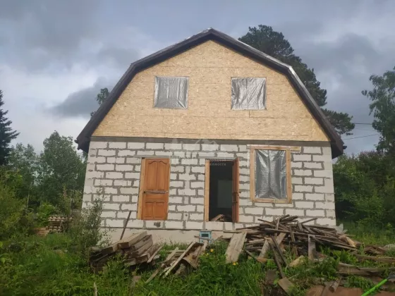 Продается дом на участке 10 соток в СНТ "Тайга -1" общей площадью 110 м2. Дом построен на ленточном фундаменте. Первый этаж выполнен из 300 газобетона свободной планировки ( перегородки можно поставить по своему усмотрению. Второй этаж мансардного типа по каркасной технологии без утепления, свободной планировки.