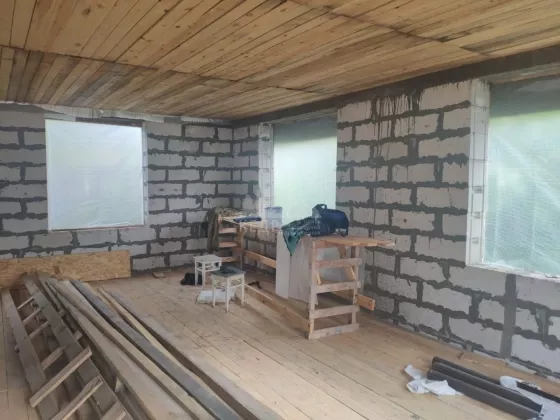В дом заведены трубы септика, септик на 3 куба. Летний водопровод.