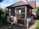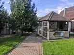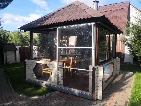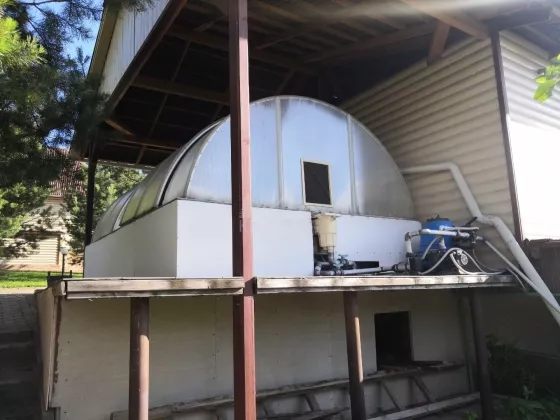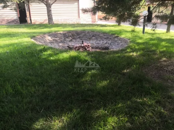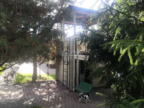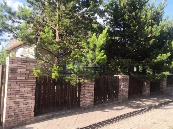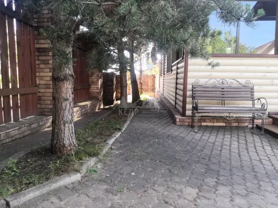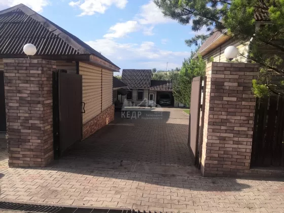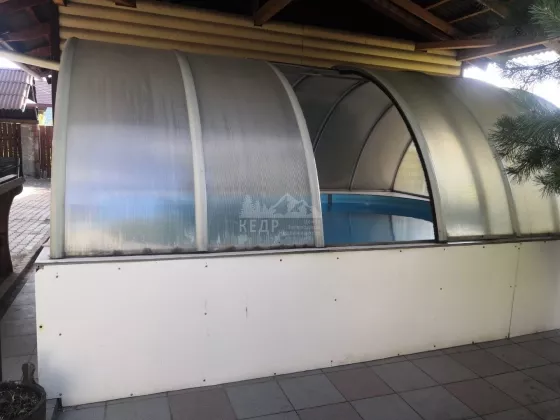 На территории в 23 сотки располагается: дом 146 кв.м. с цоколем, 2 утепленных гаража с автоматическими воротами, баня с комнатой отдыха и сан.узлом, гостевой дом с отдельным отоплением, помещение с насосной станцией, крытый бассейн с системой фильтрации, теплая беседка кирпичным с мангалом, фонтан, детская площадка, отдельная зона огорода, сад, несколько соток с газоном и деревьями. Ограда выложена брусчаткой. Ворота в ограду автоматические.