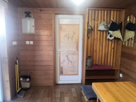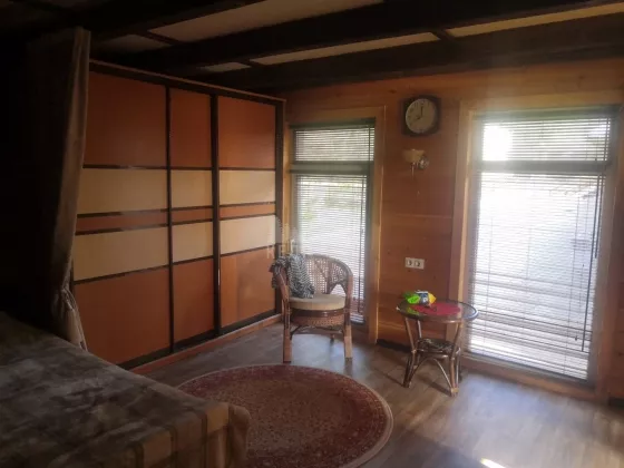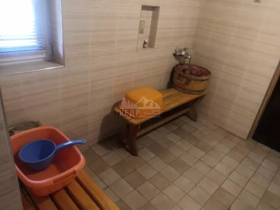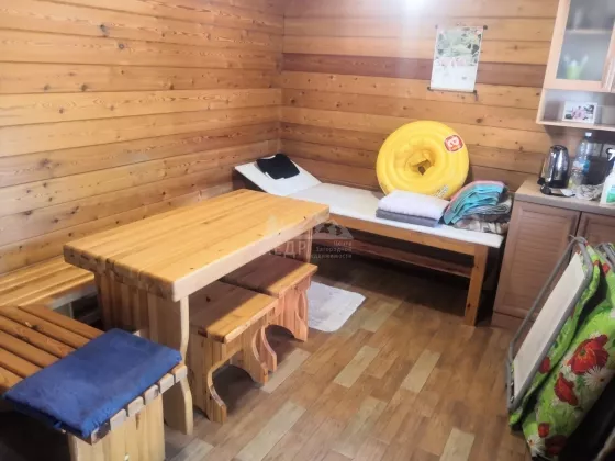 Дом: выполнен из бруса 150х150 с утеплением из Пеноплекса с внешней отделкой из натурального блок-хауса, в доме располагается - веранда, входная группа, кухня-гостиная, просторный санузел, 2 изолированные друг от друга спальни. Под домом располагается цокольный этаж в котором находится техническое помещение с отопительным котлом, бойлером, электроразводкой, а так же помещение под спортзал.