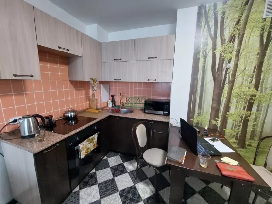 В квартире остается кухонный гарнитур, индукционная электроплита, остальная мебель - по договоренности с покупателем.