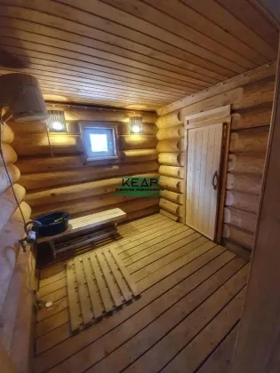 На территории имеются отдельные строения: котельная; гараж на 2 автомобиля с водяным отоплением от калорифера; гостевой дом с инфракрасным отоплением пола и твердотопливной печью; баня из круглого бруса.
