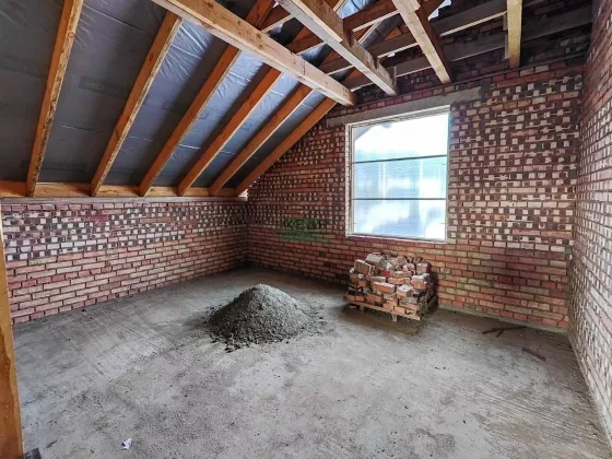 На мансардном этаже: две спальни, открытое помещение, как зона отдыха, возможно под третью спальню, большая ванная с окном, возможно ее разделить под гардероб.