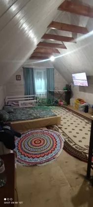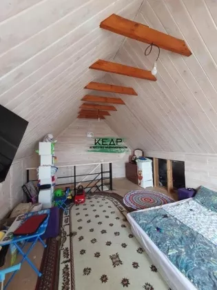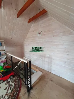 На первом этаже расположены кухня-гостиная, совмещенный санузел, техническая комната. На втором этаже 1 большая комната и 2 небольших кладовых помещения. Окна ПВХ. Деревянная лестница на металлическом каркасе. Двойные входные двери.