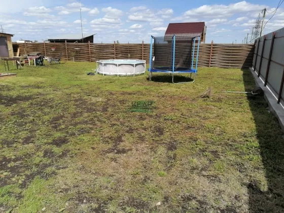 Участок правильной формы, ровный, с подведенным электричеством 15 кВт. Имеются насаждения, ягоды, плодовые деревья. На участке стоит гараж металлический, нарощенный под микроавтобус. Ёмкость для полива огорода 4.5 м3. Электрические откатные ворота, круглогодичный двусторонний подъезд к участку, от асфальта 200 метров. Парковочное место на территории перед домом.