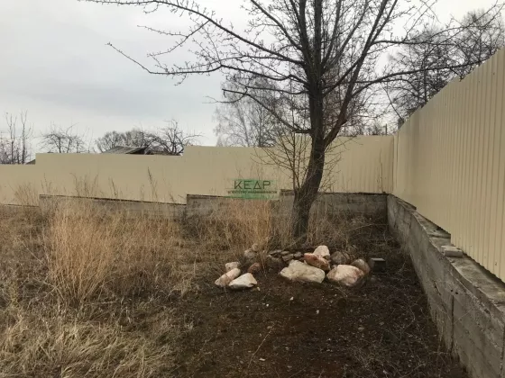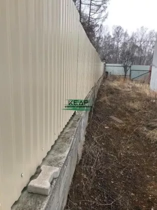 Земельный участок огорожен по периметру забором из профлиста, имеются калитка и откатные ворота.