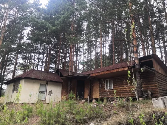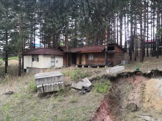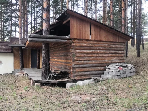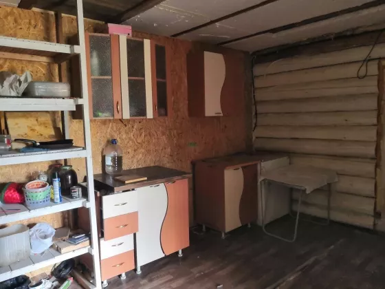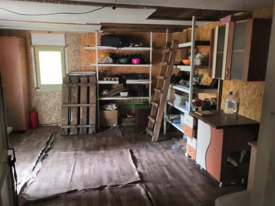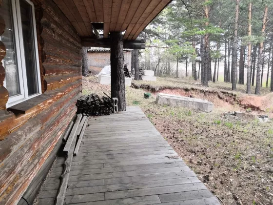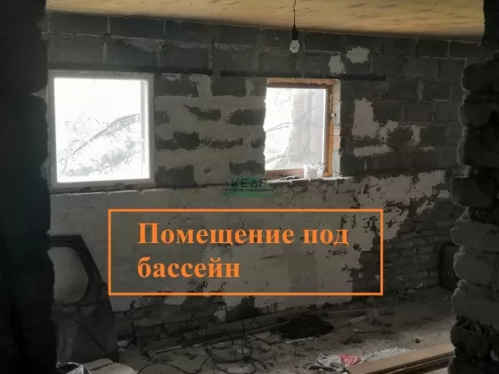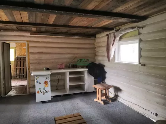 Дом: состоит из 3-х частей жилая зона из рубленного бревна (предполагалось в будущем после строительства дома переделать в баню), кухня-гостиная с входной группой каркасного типа строения и кирпично-блочное помещение которое предполагалось для бассейна (произведены все предварительные работы). Все окна ВПХ, металлическая дверь, качественная 3-х фазная электропроводка. Крыша покрыта ондулином. У дома расположена открытая терраса с которой открывается великолепный вид на лес, а ночью на безграничное звездное небо.