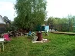 Дом построен из бруса на ленточном фундаменте, утеплен, имеет одну комнату. На полу постелен линолеум. Окна ПВХ. Чердак с высоким потолком. Санузел на улице. Летний душ.