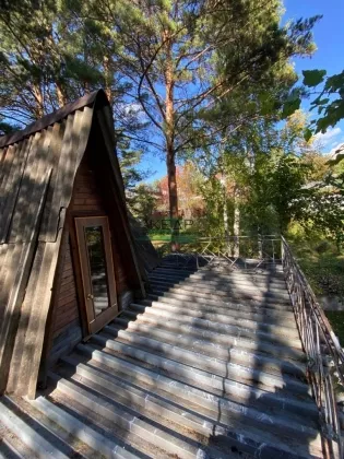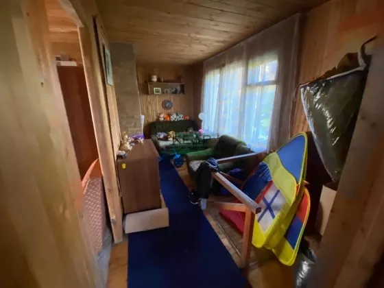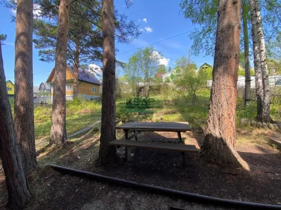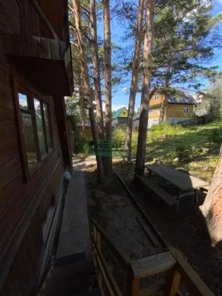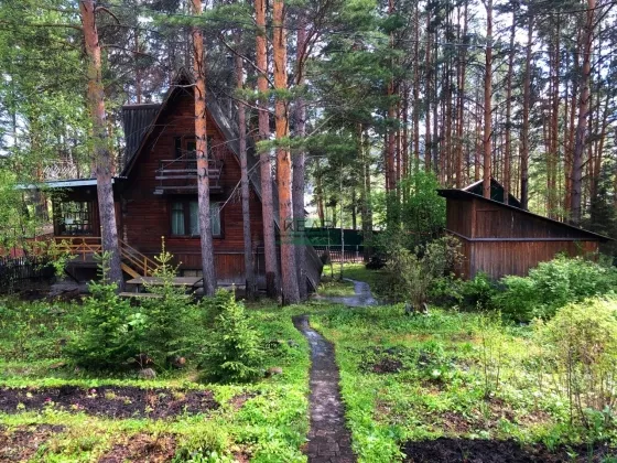 Продается дом 88кв. в сосновом лесу с баней. Дом двух этажный + цокольный этаж. На цокольном этаже свободная комната с печкой. На первом этаже веранда-кухня, гостиная комната с камином и комната кабинет. На втором этаже комната отдыха + терраса выход на крышу и балконы. Использовался как летний дом. В саду деревья красных и желтых ранеток! Кусты малины и вишни, растет клубника и барбарис. Альпийские горки из природного камня. Отделка цоколя, дорожек и парковки гранитом. Хорошая баня с комнатой отдыха, мойкой и парилкой. До ближайшего озера идти 5 минут. . Воду для полива централизовано подают из озера, по расписанию. Бочка с чистой водой в 5 минутах ходьбы, колодец в 15-ти. Дачный туалет на улице. Продуктовый магазин в 10 минутах ходьбы от дачи.