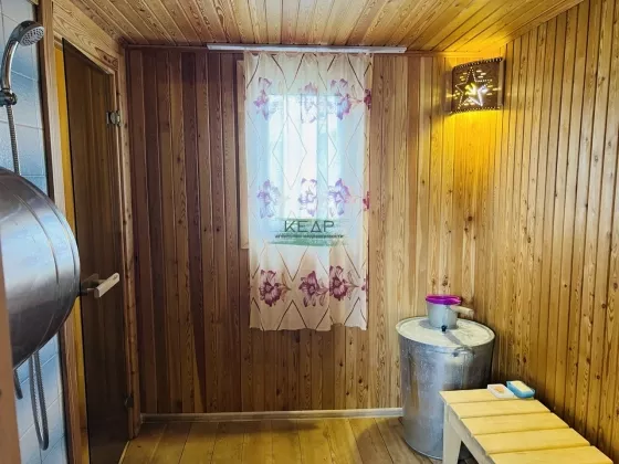На участке имеется: баня 4*4 (брус 100*150) предбанник (отделка сосна), моечная (лиственница), парилка (кедр). веранда крытая, бак на 4 куб.м, туалет уличный+хоз.постройка. На участке также имеются насаждения: жимолость, ранетка, вишня, малина, крыжовник, смородина чёрная, клубника. Участок ровный, правильной формы, ухожен, огорожен забором. Имеется парковочное место на участке. Всё в собственности, 1 собственник, документы готовы к продажи, подходит под ипотеку.