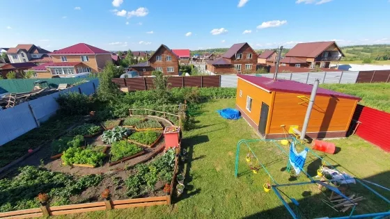 Участок полностью огорожен забором из профлиста. Территория облагорожена, гармонично сочетает в себе зону отдыха и огородничества. Есть детская площадка.