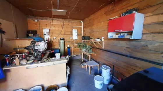 К дому пристроен брусовой теплый гараж (45м2) с автоматическими воротами и котельная (15 м2) с отдельным входом. Установлен твердотопливный котел Zota Carbon - 32 кВт (стальной) + электрокотел Zota. На участке есть специальная емкость для хранения угля с подъемной крышей, куда высыпается уголь с машины.