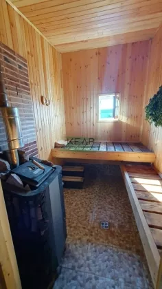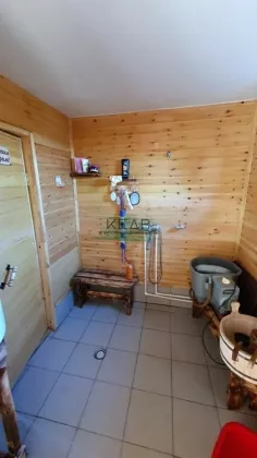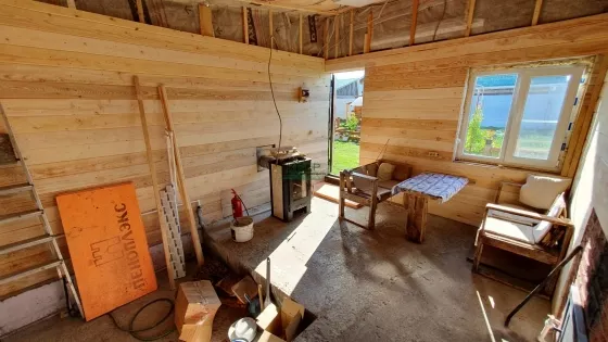 На заднем дворе расположена брусовая баня (6*5). Комната отдыха в процессе обустройства, моечная и парная полностью готовы. Установлены теплые полы. Бойлер на 80 л.