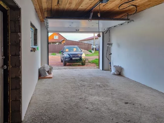 Гараж с автоматическими воротами DoorHan. В углу которого сделана разводка с теплыми полами и Эл. Котёл.