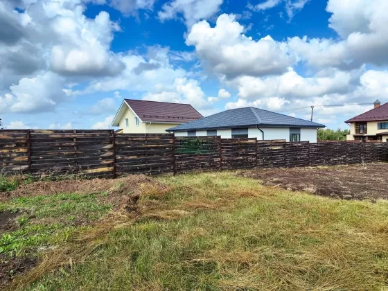 Ровный правильной формы, по периметру установлен забор ,откатные ворота , калитка.