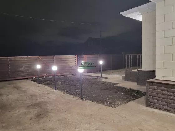 Tpи спальни, простopнaя кухня - гоcтиная. Две ванных комнаты, прихожая, несколько подсобных помещений. Так же в доме имеется гараж с автоматическими подъемными воротами.