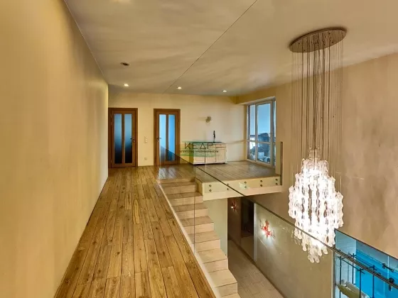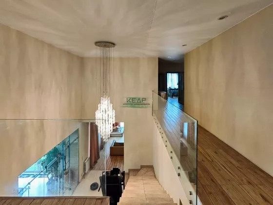 Лестница с двойным светом ведет на второй этаж, где находятся 4 комнаты, 2 сан узла, 2 веранды открытая и закрытая.
