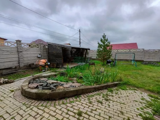 Дом располагается на земельном участке 15 соток, огороженном единым заборам с откатными электро воротами.