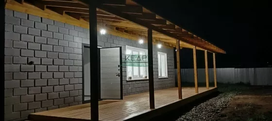 Дом изготовлен из теплоблоков (на сегодняшний день это самый теплый блочный материал). Терраса 30 кв.м. В доме расположены три отдельные комнаты, просторная кухня-гостиная, совмещенный санузел, тех. комната, прихожая.