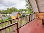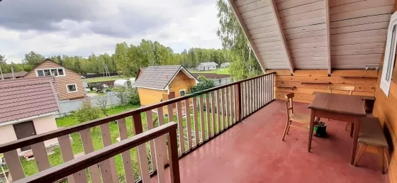 Продается уютный загородный, двухэтажный дом из бруса 180 мм, в очень красивом, живописном месте, коттеджном поселке "Поместье" Емельяновского района в районе д. Раскаты на участке 15 соток СНТ, правильной формы, не имеет уклона, граничащий с лесом. Дополнительно на участке имеется баня 20 кв.м, дом-зимовник 30 кв.м. (можно использовать под гостевой домик), гараж с автоматическими воротами. Все постройки с обработкой антисептиком и пропиткой. По коммуникациям имеем ХВС - собственную скважину, водоотведение - септик, электричество 15 КВт 380 В, отопление - печь и электро-теплофоны. По планировке на первом этаже входная просторная веранда, прихожая, кухня, зал, спальня, санузел, техническая комната. На втором терраса и одна просторная комната.