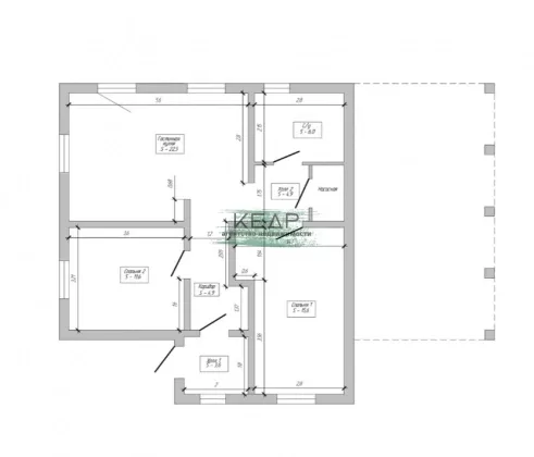 Две уютные спальни (11,5 м2 и 15,6 м2), светлая кухня - гостиная (22,5 м2) с французскими окнами и выходом на освещенную террасу. Ванная комната (6,0 м2). В доме предусмотрены места для расположения стенных шкафов, что значительно улучшает качество жизни, позволяя сохранять свободное пространство.